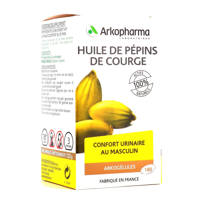 L’Huile de pépins de Courge, issue de l’agriculture biologique et obtenue par 1ère pression à froid, favorise le confort d’élimination urinaire chez l’homme.